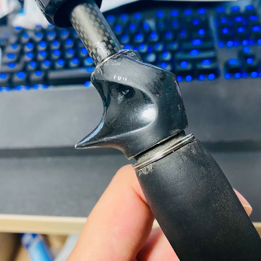 스켈레톤 그립의 단점인듯 합니다. 릴시트 돌아가서 더 꽉 결합하다보니 뒤에 에바그립까지 밀려 들어갔네요.