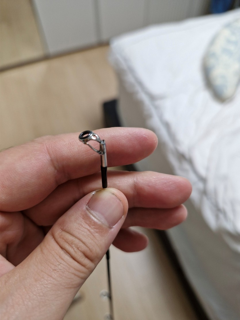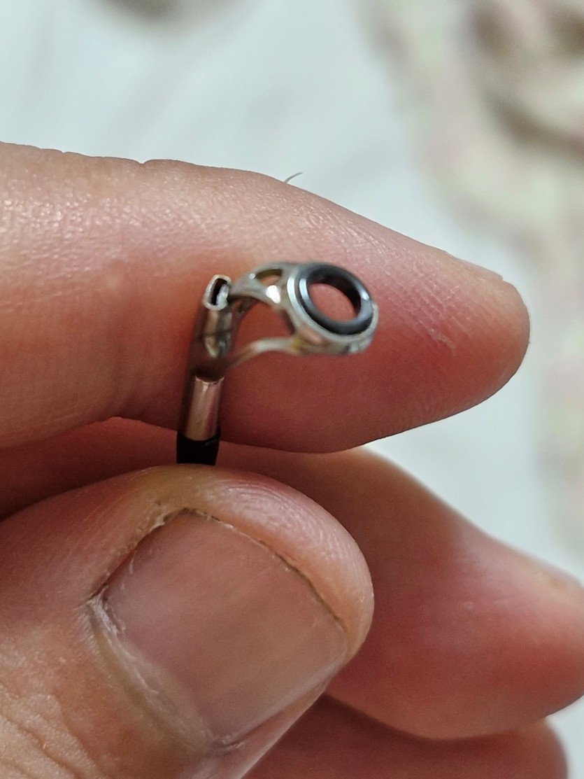 1. 가이드 파손. 갯바위 에서 캐스팅 하다가 초릿대를 부딪혀서 가이드 연결부위가 파손되었습니다(이미지 업로드).